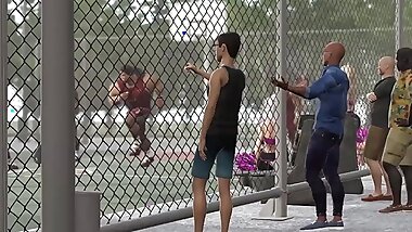 "Basketball players fuck hard a sexy cheerleader girl on the street"
