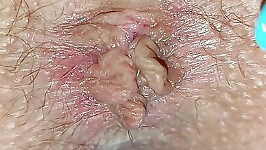 "Closeup of wife rubbing her hairy wet milf pussy"