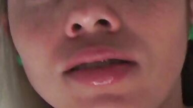 "BJ POV babe deepthroats cock in dirty talking closeup"