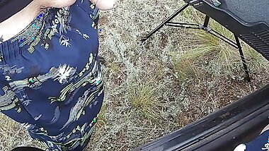 "the bitch sits in the car and publicly jerks off my dick in nature until I cum close up"