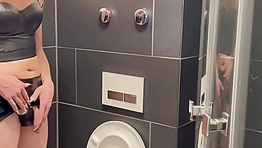 "beautiful Trans with minidress strips naked in public with rich penis high heels delicious ass and hot legs enjoy it"