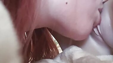 Lesbian milfs with big tits suck and play
