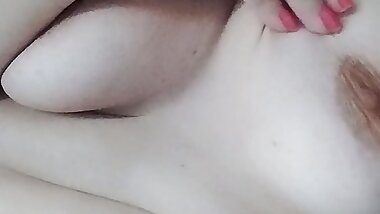 "Saggy tits sucking closeup, Extremly close-up nipple play"