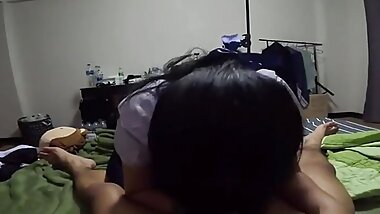 "Thai Teen 18+ student Sock feet sex Tight Pussy creampie with husband"